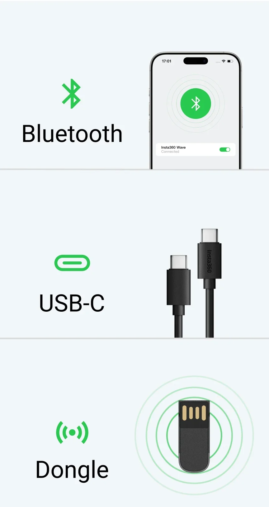 Das Insta360 Wave ist weit mehr als ein herkömmliches Lautsprechermikrofon. Es ist Ihre All-in-One-Lösung für exzellenten Ton – entwickelt für die Anforderungen moderner Kommunikation, Präsentation und Content-Erstellung.Premium-AudioqualitätDas Wave nutzt ein hochmodernes 3D-Mikrofon-Array mit acht präzisen MEMS-Mikrofonen, die Stimmen aus bis zu fünf Metern Entfernung klar erfassen. Mit einer Abtastrate von 48 kHz liefert es Studioqualität in Echtzeit.Dank fortschrittlicher KI-Algorithmen werden Umgebungsgeräusche und Echos automatisch herausgefiltert, während die adaptive Richtcharakteristik – etwa Nieren-, Supernieren- oder Stereo-Modus – für eine optimale Aufnahme in jeder Umgebung sorgt.Smarte KI-FunktionenNeben exzellenter Klangqualität überzeugt das Insta360 Wave durch seine intelligenten Features. Das Gerät speichert Audioaufnahmen intern auf 32 GB Speicher und bietet KI-gestützte Transkriptionen, automatische Meeting-Notizen und sogar Übersetzungen in bis zu 99 Sprachen. Ob Online-Meeting, Podcast oder Webinar – das Wave macht Ihre Kommunikation produktiver und einfacher.Vielseitige VerbindungsmöglichkeitenDas Speakerphone lässt sich flexibel via USB-C, Bluetooth oder mit dem beiliegenden Dongle verbinden. So integrieren Sie es mühelos in jedes Setup – egal ob Laptop, Smartphone oder Konferenzsystem.Mit einem leistungsstarken 9800 mAh-Akku läuft das Wave bis zu 12 Stunden am Stück – ideal für lange Meetings oder Reisen.Edles Design & hochwertige AusstattungDas elegante, zylindrische Design mit verstellbarer Höhe wirkt modern und professionell auf jedem Schreibtisch. Erhältlich in Graphite Black oder Arctic White, fügt sich das Wave harmonisch in jedes Arbeitsumfeld ein.Zum Lieferumfang gehören ein USB-C-Kabel, ein USB-A-Adapter, ein Dongle sowie eine praktische Transporttasche – alles, was Sie für den sofortigen Einsatz benötigen.Vorteile auf einen BlickHerausragende Sprach- und Klangqualität dank 8-Mikrofon-Array und KI-AudioverarbeitungIntelligente Funktionen: Transkriptionen, Übersetzungen und Meeting-ZusammenfassungenFlexible Konnektivität über USB-C, Bluetooth und DongleLange Akkulaufzeit von bis zu 12 StundenModernes, professionelles Design mit hochwertiger VerarbeitungKomplettes Zubehör-Set inklusive TransportetuiTechnische Daten (Auszug)Mikrofone: 8 × MEMS-MikrofoneSprach-Erfassungsbereich: bis zu 5 mAbtastrate: 48 kHzRichtcharakteristik: Omnidirektional, Nieren, Supernieren, Acht, StereoSpeicher: 32 GB internAkku: 9800 mAh, Laufzeit bis 12 hAbmessungen: Ø 64,3 mm, Höhe 198–248 mmGewicht: ca. 490 gFarben: Graphite Black, Arctic WhiteFür wen ist das Insta360 Wave ideal?Für Profis im Homeoffice, die Wert auf klare Kommunikation legenFür Podcaster und Content Creator, die hochwertigen Sound ohne komplexe Technik wünschenFür Unternehmen und Konferenzräume, die eine zentrale, smarte Audio-Lösung suchenFür Kreative und Vielreisende, die ein flexibles, transportables Speaker-System brauchenFazit & KaufanreizMit dem Insta360 Wave holen Sie sich ein Stück Zukunft auf den Schreibtisch. Hochwertige Technik, smarte KI-Funktionen und modernes Design vereinen sich zu einem leistungsstarken Begleiter für professionelle Kommunikation und kreative Projekte.?? Jetzt bestellen und den Unterschied hören – klare Stimmen, weniger Rauschen, mehr Produktivität.