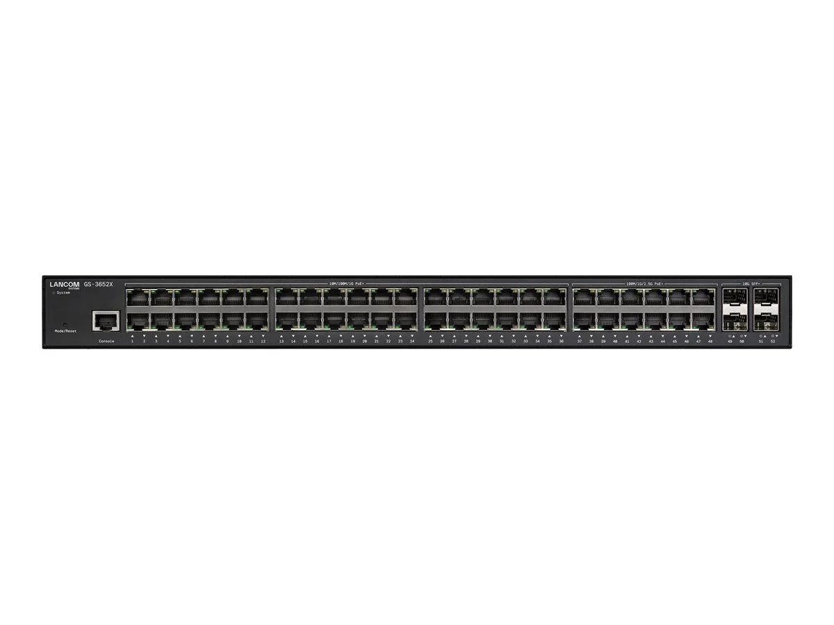 Der LANCOM GS-3652X Switch ist für die Anforderungen moderner Netzwerke konzipiert und bietet eine Mischung aus Leistung, Sicherheit und Verwaltbarkeit. Mit insgesamt 52 Ports, darunter PoE+ und 2.5G PoE+ Optionen, bietet er flexible Konnektivität für eine Vielzahl von Geräten. Der beeindruckende Durchsatz von 212 Gbit/s und die Switching-Kapazität von 130 Millionen Paketen pro Sekunde sorgen für einen reibungslosen Datenfluss im Netzwerk und machen den Switch zu einer idealen Lösung für Umgebungen, die eine schnelle Datenübertragung und einen zuverlässigen Betrieb erfordern. Sicherheit wird groß geschrieben: Funktionen wie RADIUS- und TACACS+-Authentifizierung, MD5- und SSL-Verschlüsselung sowie erweiterte VLAN-Unterstützung sorgen für eine sichere Netzwerkumgebung. Das rack-montierbare Design des LANCOM GS-3652X inklusive Montage-Kit ermöglicht die einfache Integration in jedes Standard-Rack und macht ihn zu einer vielseitigen Wahl für jedes Unternehmen, das seine Netzwerkinfrastruktur erweitern möchte.