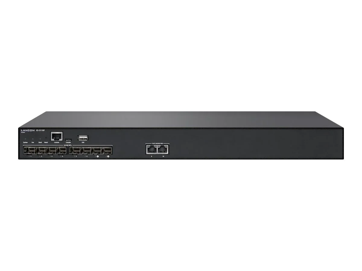 Durch seine 8 zukunftssicheren Glasfaser-SFP+-Ports fungiert dieser 10G Aggregation Switch als übergeordnete Instanz für den Anschluss weiterer Access Switches in kleineren verteilten Netzwerken. Zwei zusätzliche Multi-Gigabit Ethernet-Ports (10/5/2,5/1G) ermöglichen eine flexible und kostengünstige Integration leistungsstarker Netzwerkkomponenten. Dank des ganzheitlichen LANCOM Netzwerk-Managements kann das Gerät entweder dynamisch und automatisiert per LANCOM Management Cloud (SD-LAN) oder mittels Cloud-enabled Web-GUI sowie Cloud-enabled CLI konfiguriert werden.