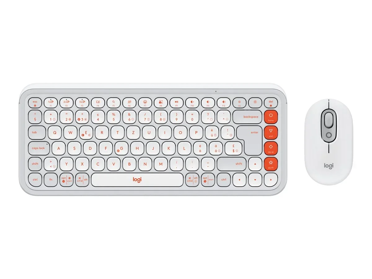 Logitech POP Icon Combo - Tastatur-und-Maus-Set - kabellos - Bluetooth LE - QWERTZ - Schweiz - Off-White, orange
