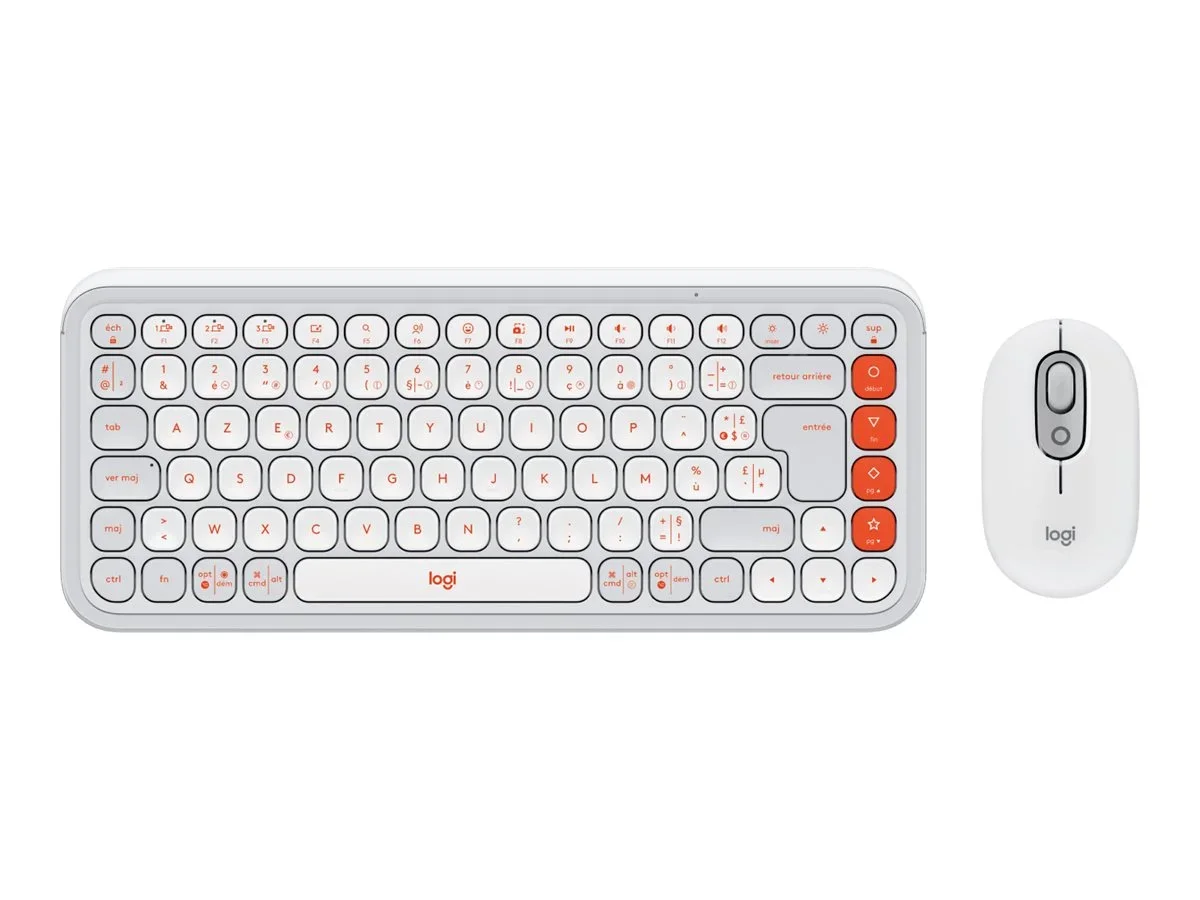 Logitech POP Icon Combo - Tastatur-und-Maus-Set - kabellos - Bluetooth LE - AZERTY - Französisch - Off-White, orange
