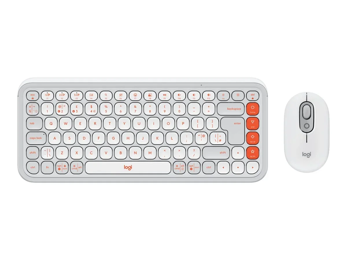 Logitech POP Icon Combo - Tastatur-und-Maus-Set - kabellos - Bluetooth LE - QWERTY - GB - Off-White, orange