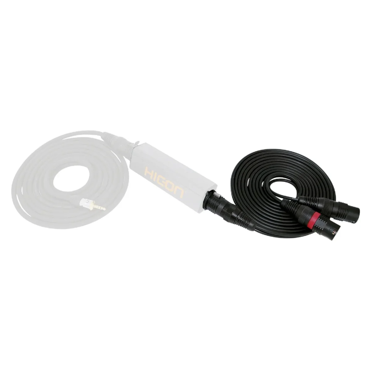 Besteht aus: 0,35 m Patch- & Mikrofonkabel SC-Peacock MKII; DMX: 2 x 0.22 mm²; S-PVC; 9.2 x 4.5 mm; schwarz (200-0551)1 x HI-X5CF-M-WOB2 x HICON XLR PRO+, 3-pol male, versilberte Kontakte, Metallgehäuse schwarz, Metallkappe schwarz, 6-Backen-Spannzan…
