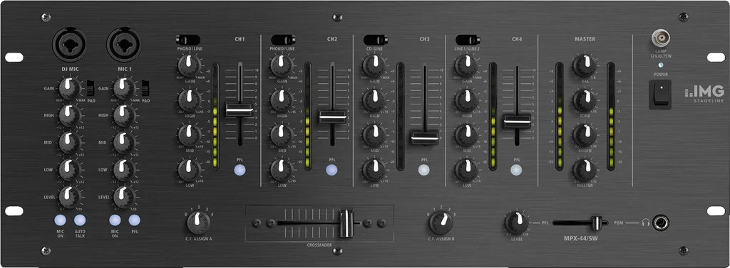 | Klangregelung Mitten | +12 dB, -12 dB/1 kHz (Mic)+15 dB, -30 dB/1 kHz (Kanal 1-4) |