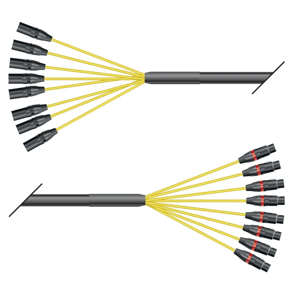 Bitte beachten Sie: Professionelle Anwender setzen zumeist nur 4- oder 8-paarige Looms ein, da Multipairs mit mehr als 8 Paaren ein erhebliches Gewicht aufweisen und bei manchen Synthesizern, Workstations, Mischpulten oder anderen Geräten die Printanschlüsse der Einbaubuchsen regelrecht „aushebeln“.