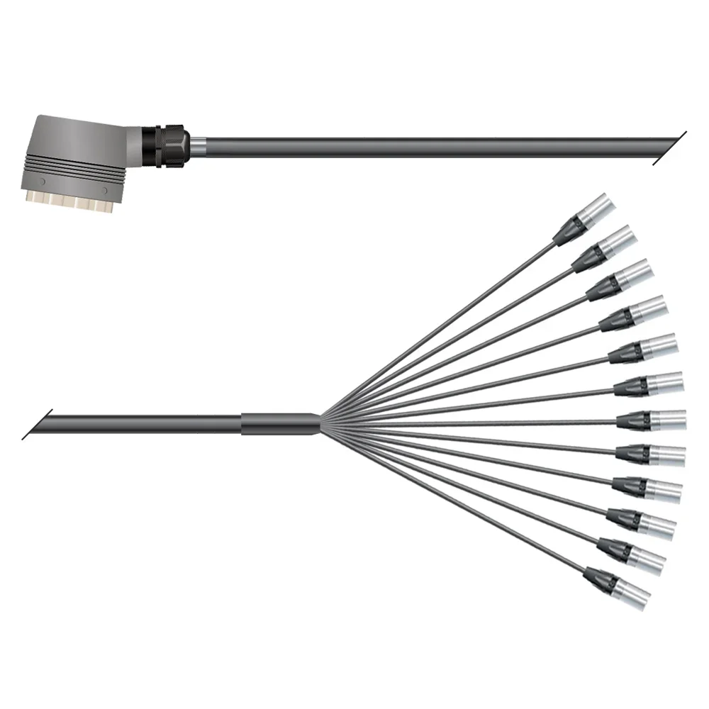 Zum Bau der folgenden Spleisse verwenden wir unser hochflexibles Multipair-Kabel PLANET mit einzelisolierten und geschirmten Adernpaaren. Auf der XLR-Seite kommen hochwertige Steckverbinder mit Nummerierungsring von HICON und NEUTRIK® zum Einsatz; alternativ liefern wir eine Variante mit Returns als NEUTRIK® Convertcons.