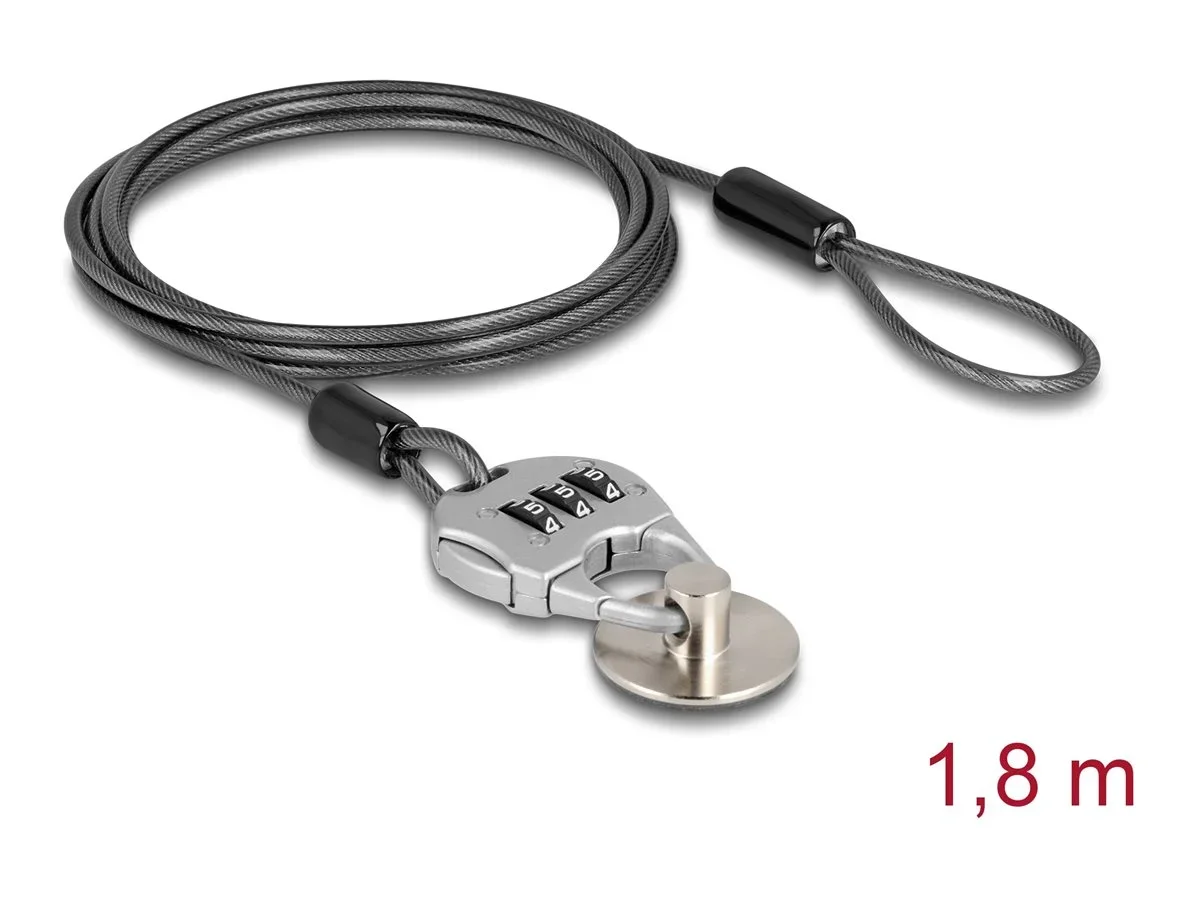 Navilock - Sicherheitskabelschloss - mit Kombinationsschloss und Stahlplatte mit Klebepad - Schwarz - 1.8 m