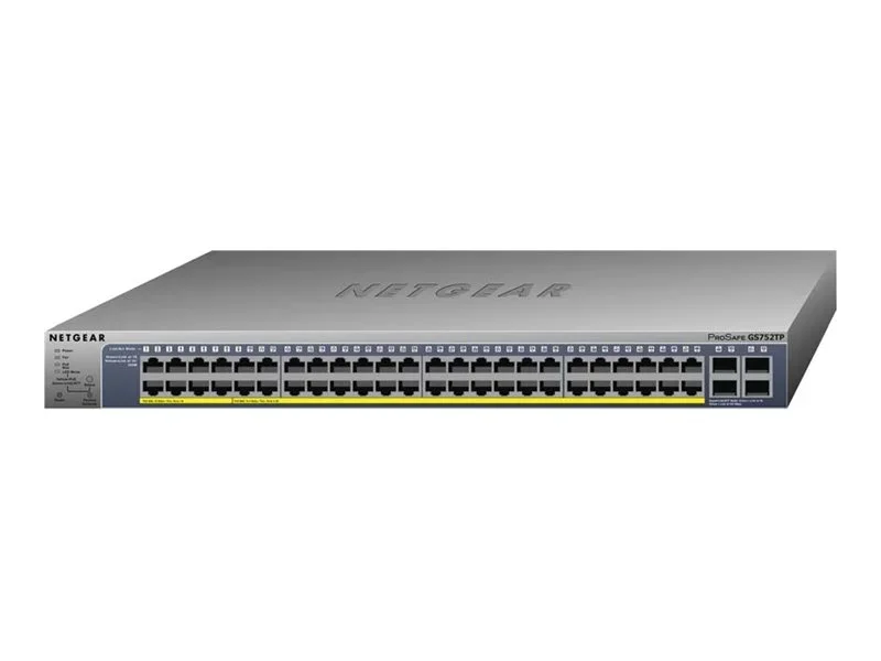 NETGEAR Smart GS752TP - Switch - L3 Lite - Smart - 8 x 10/100/1000 (PoE+) + 40 x 10/100/1000 (PoE) + 4 x SFP - Desktop, an Rack montierbar - PoE+ (384 W)