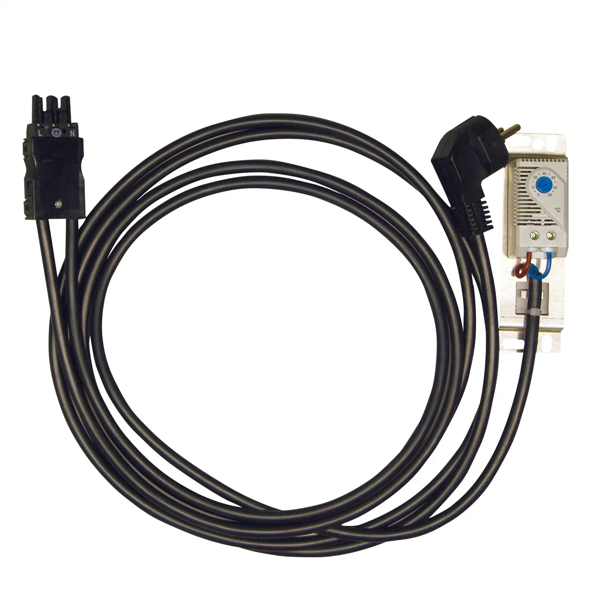 Netzanschlusskabel mit Temperaturregler für Lüftereinschub an Schutzkontaktstecker