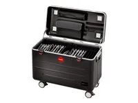 Der PARAPROJECT Case TC20 ist die sichere Transport- und Aufbewahrungslösung für bis zu 20 iPads bis 12,9''. Die integrierten und innovativen TwinCharge Module ermöglichen das unkomplizierte und schnelle Laden aller Geräte durch USB-A und USB-C Anschlüsse mittels USB-PD (Power Delivery) und QuickCharge. Die Einschubfächer sind aus ebenso leichten wie formstabilen „Con-Pearl "-Kunststoffwaben gefertigt. Dank der in Deckel und Boden integrierten Öffnungen kann die Luft im Case optimal zirkulieren. Ein außen angebrachter Hauptschalter und ein Überspannungsschutz bieten die nötige Sicherheit im täglichen Einsatz. Mit zwei Zahlenschlössern versehen und seiner schwarzen, robusten Außenschale aus 3 mm starkem X-ABS-Kunststoff zeichnet sich der Systemkoffer darüber hinaus durch einen sicheren Rundumschutz aus. Vier Leichtlaufräder, davon zwei mit Radfeststellern, der 4-fach Trolley-Teleskopauszug und zwei seitlich angebrachte Tragegriffe sorgen für bequemes und sicheres Handling. Zudem überzeugt der PARAPROJECT Case TC20 durch diverse Fächer und Taschen, die im Kofferdeckel eingearbeitet sind, mit seiner durchdachten Funktionalität. Im Case sind 20 USB-A-Kabel mit Lightning Connector und LED Anzeige mit MFi-Zertifizierung, Boost ChargeTM und Nylon-Verstärkung vorinstalliert.