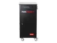 Viele Geräte und wenig Platz? Hier glänzt der effiziente PARAPROJECT Trolley C30 mit seinen 30 nummerierten Fächern für iPads. Verteilt auf drei Ebenen, lassen sich die Geräte in dem schlanken Korpus sicher aufbewahren und transportieren. Ausgestattet mit 30 Lightning -Ladekabeln, kann der Trolley sofort eingesetzt werden. Bis zu 60 W pro Port ermöglichen schnelles Laden und unterstützen USB-PD Power Delivery. Durch die intelligente LED Statusanzeige hat man stets im Blick, ob die Geräte noch laden oder bereits voll sind. Zudem ist jederzeit eine Ampere/Watt-Abfrage möglich. Planungssicherheit bringt die integrierte Wochenzeitschaltuhr, die effiziente Ladepläne ermöglicht. Jedes der dreißig Fächer ist klar nummeriert und bietet verschiedene Kabelführungen und -halterungen, um Ordnung zu halten. Kabelsalat ade! Außerdem bietet der PARAPROJECT Trolley C30 eine aktive Lüftung. Eine Transportsicherung und die abschließbare Tür bieten zusätzlichen Schutz. Der robuste Trolley aus Stahl ist ebenso mit feststellbaren, gummierten Leichtlaufrädern ausgestattet sowie mit einem Griff aus perforiertem Aluminium. Die obere Ablagefläche kann als Pult genutzt werden. Seitlich am Trolley finden sich Stromanschluss und ein Hauptschalter. Zwei zusätzliche Schuko-Steckdosen ermöglichen das Verwenden von Peripheriegeräten, wie z.B. Masterlaptop oder Beamer.