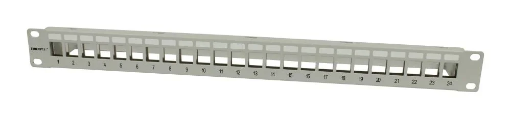 Patch Panel 24xTP, CAT6A, incl.Keystone Slim-line/Komponent getestet, 19", 1HE(t 94mm), Lichtgrau, Synergy 21,