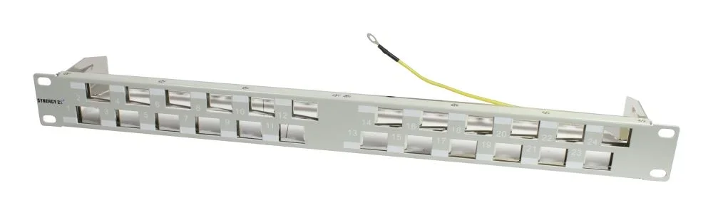 Patch Panel 24xTP, CAT6A, incl.Keystone Slim-line/Short 3P, 19", 1HE(t 96mm) 45Grad Schrägauslass, Lichtgrau, Synergy 21,