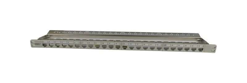 Patch Panel 24xTP-TP(Kupplung), CAT6A, incl.Keystone Slim-line, 19", 0,5HE, Lichtgrau, Synergy 21,
