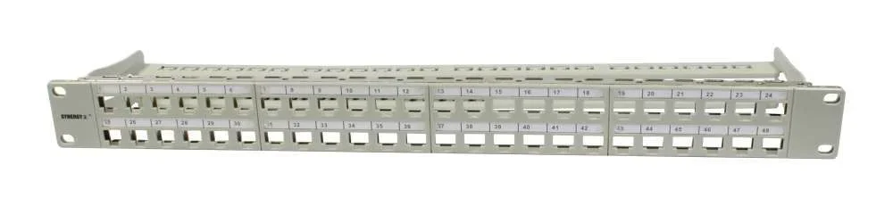 Patch Panel 48xTP, CAT6A, incl.Keystone Short mit Kabelklemme, 19", 1HE(t95mm), Lichtgrau, Synergy 21,