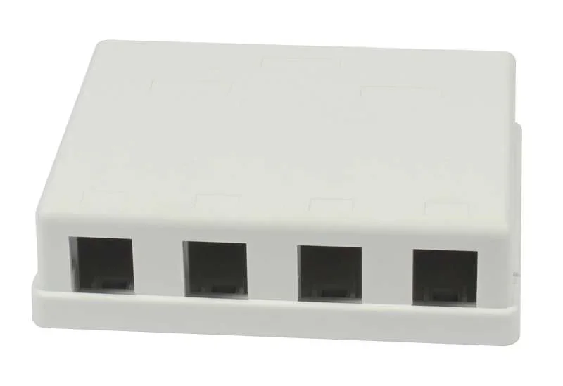 Patch Panel 4xTP, CAT6A, incl.Keystone Slim-line mit Kabelklemme, Aufputz ABS, Weiss, Synergy 21,