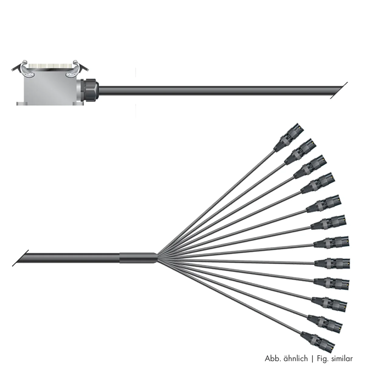 Zum Bau der folgenden Spleisse verwenden wir unser hochflexibles Multipair-Kabel PLANET mit einzelisolierten und geschirmten Adernpaaren. Auf der XLR-Seite kommen hochwertige Steckverbinder mit Nummerierungsring von HICON und NEUTRIK® zum Einsatz; alternativ liefern wir eine Variante mit Returns als NEUTRIK® Convertcons.