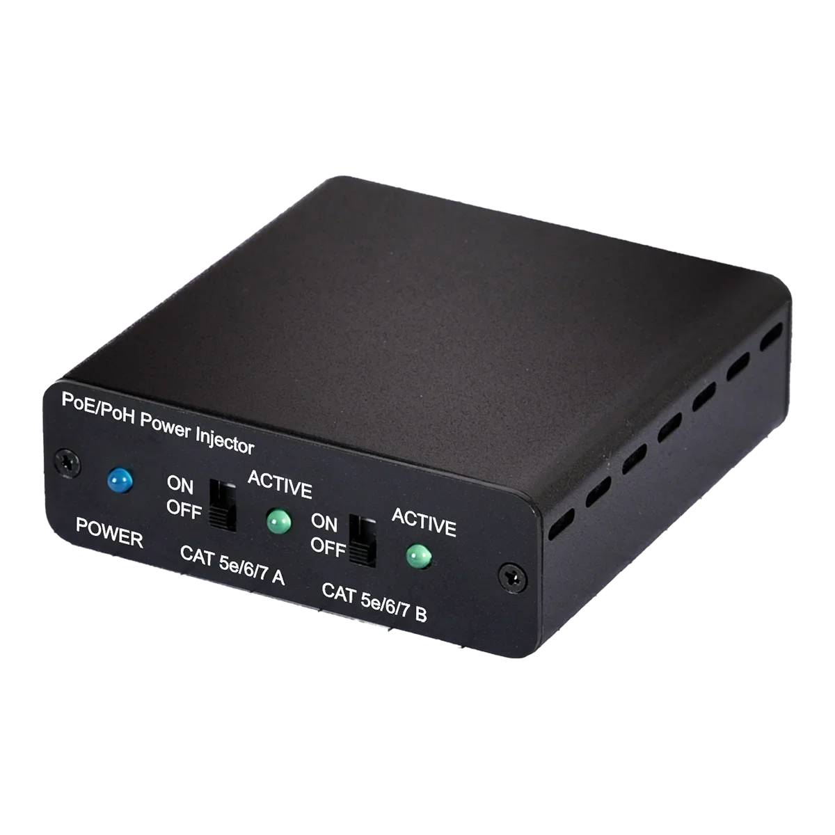 Supports DC 48V to products using IEEE 802.3af Power over Ethernet, Supports power over Ethernet with a distance of up to 100 meters, Features power switches to selectively the power direction, Supports interoperable powered devices (PD) and power sourcing equipment (PSE), Supports 10.2 Gbp bandwidth, 4K ultra-high resolutions signals and multichannel audio formats