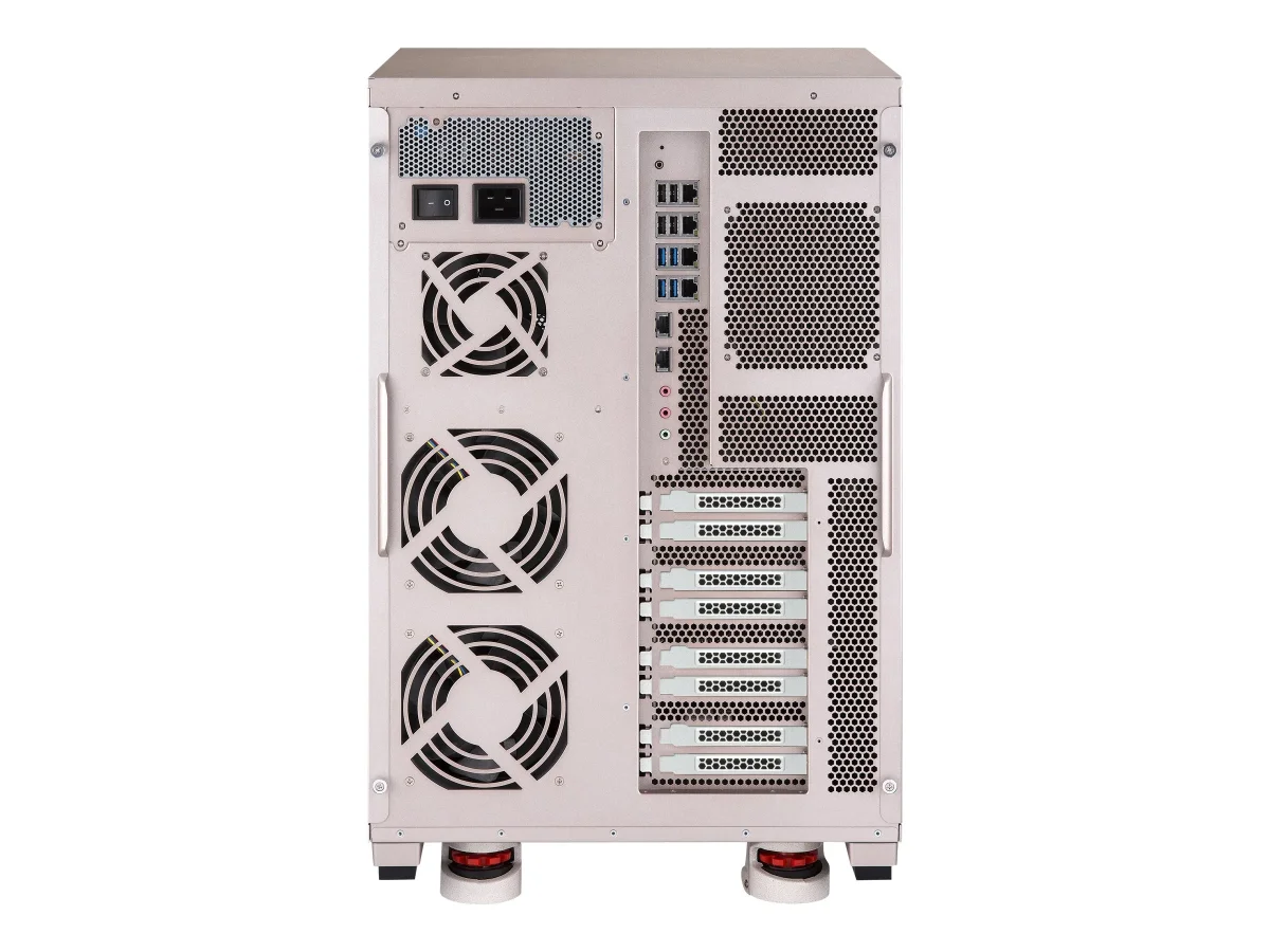 Das TS-2888X nutzt eine hybride Architektur mit leistungsstarken Festplatten und Hochleistungs-SSDs, um die Anforderungen an Skalierbarkeit und Leistung zu erfüllen. Es unterstützt bis zu 4 Grafikkarten und liefert so eine enorme Rechenleistung zur Beschleunigung des maschinellen Lernens der KI. Durch die Integration von gebrauchsfertiger KI-Software mit GPU-basiertem Speicher bietet das TS-2888X eine geringe Latenzzeit, ermöglicht eine schnelle Datenübertragung und reduziert effektiv Leistungsengpässe.