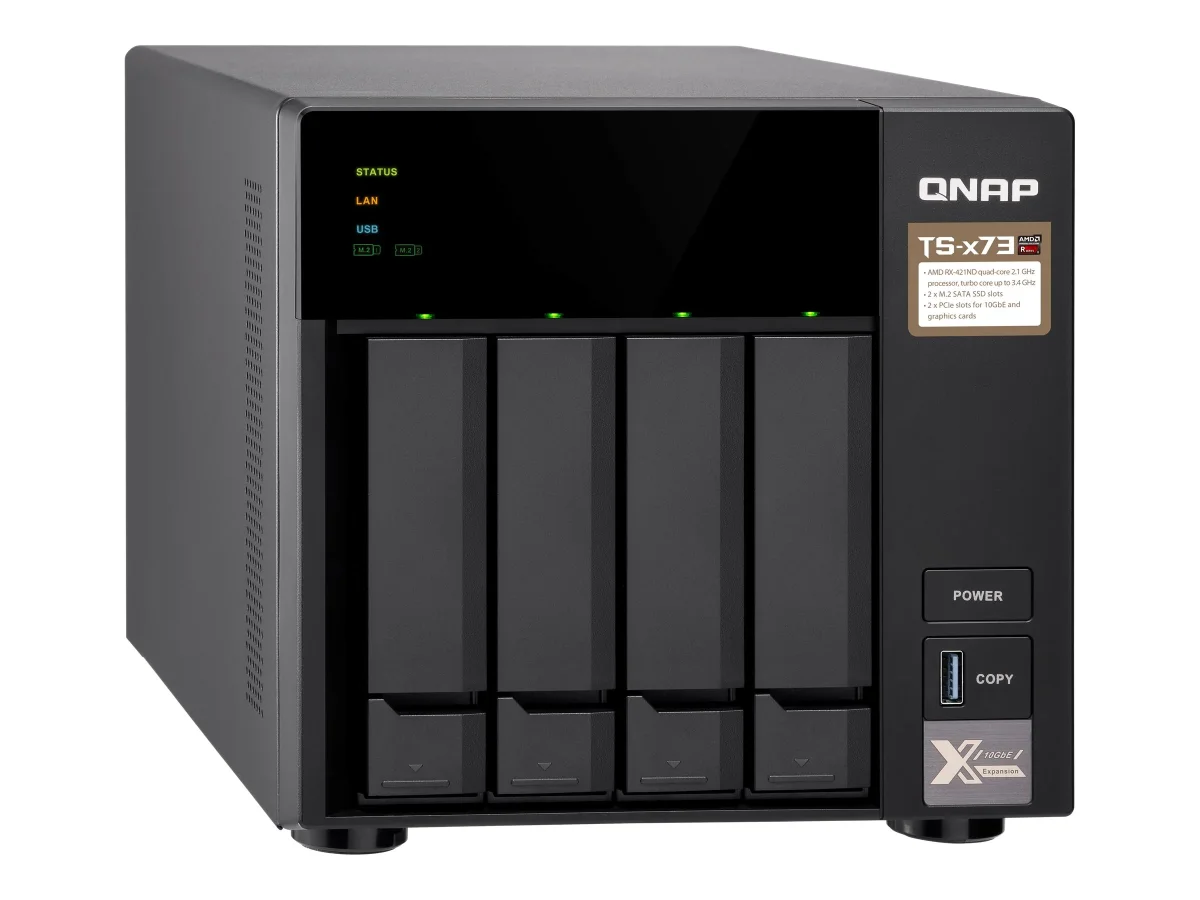 QNAP TS-473-8G - NAS-Server - 4 Schächte - SATA 6Gb/s - RAID 0, 1, 5, 6, 10, JBOD, 5 Hot Spare, 6 Hot Spare, 10-Hot-Spare - RAM 8 GB - Gigabit Ethernet - iSCSI Support