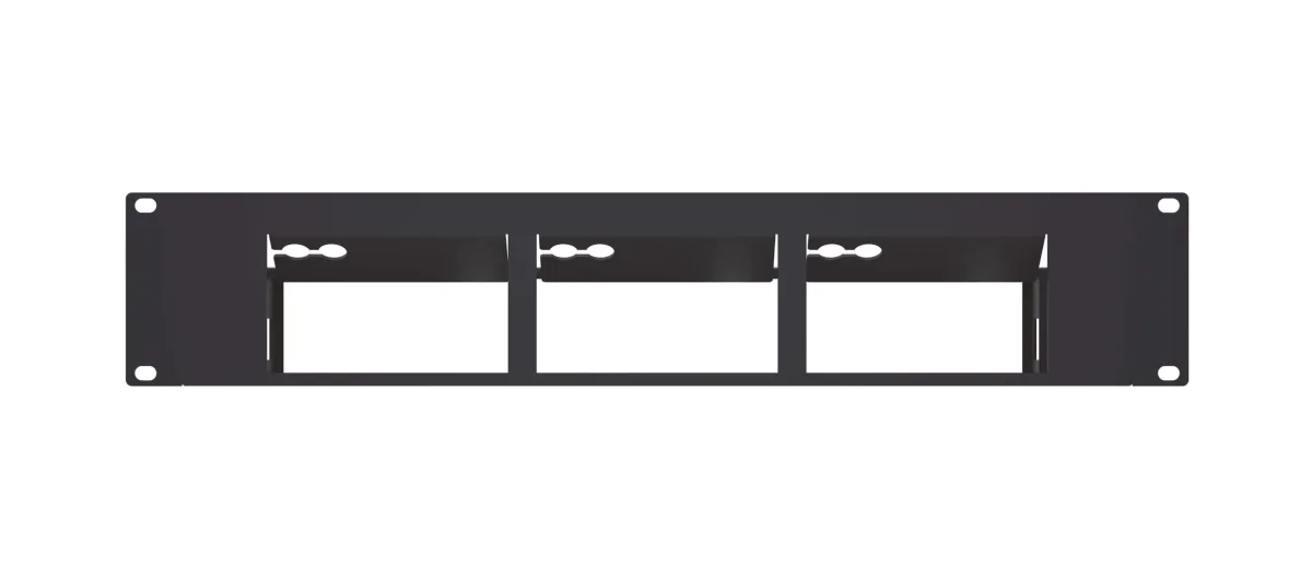 19 Zoll Rackadapter für die Montage von max. drei VIA Connect PRO Geräten mit zugehörigen Netzteilen in 2 HE eines Racks.