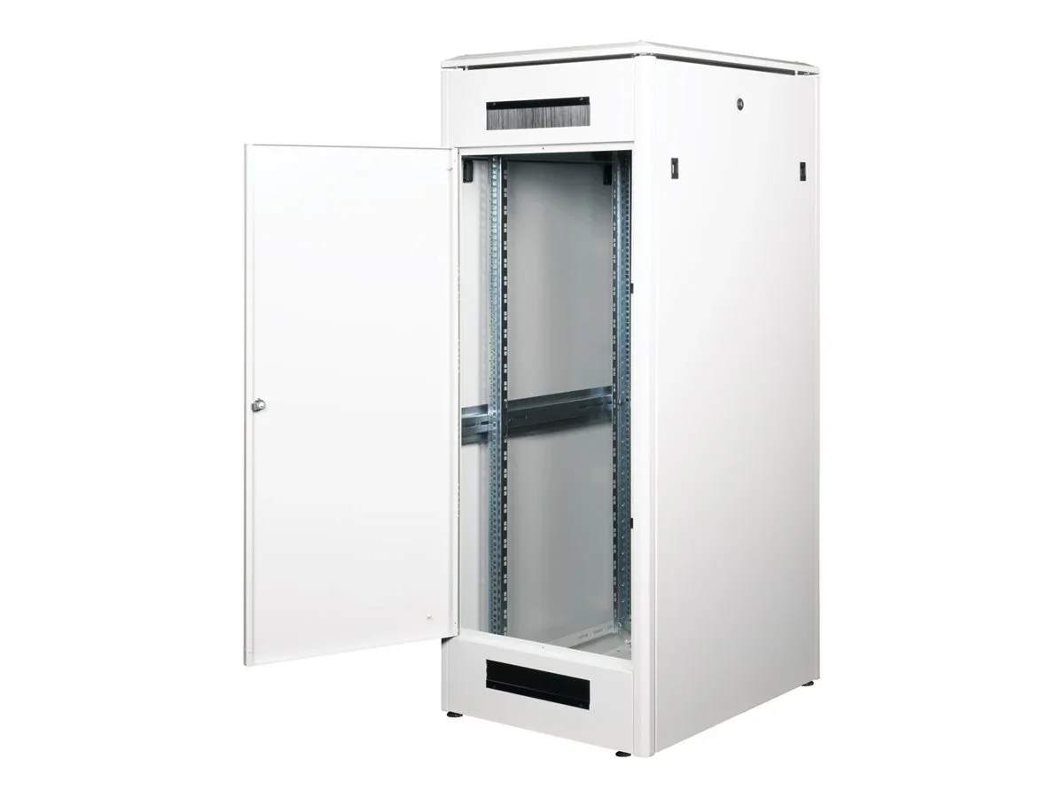 ROLINE 19 Zoll Netzwerkschrank Pro 32 HE 600x800 BxT Glastür grauDie Netzwerkschränke der ROLINE Pro Serie wurden entwickelt, um eine besonders komfortable und flexible Netzwerkverkabelung zu ermöglichen. Mit Bürsteneinlässen im Dach- und Bodenbereich (ab 26HE und 800 mm Schrankbreite), einem aufschiebbaren Einlass im Bodenchassis mit Moosgummidichtung sowie Bürstenleisten ober- und unterhalb der Rücktür (ab 26HE) bieten sie vielseitige Einsatzmöglichkeiten für verschiedene Anwendungsszenarien. Vertikale Kabelführungskanäle mit Blende, installiert neben den Profilschienen (ab 800 mm Schrankbreite), vervollständigen das Design. Ein abgesetzter, abnehmbarer Deckel mit Lüftungsschlitzen verbessert die Luftzirkulation und ermöglicht eine einfache Installation eines Lüftermoduls. Die Lüftereinheit kann von oben ein- und ausgebaut werden, ohne dass die Komponenten im Inneren betroffen sind. Im Inneren sind zwei Paar galvanisierte 19"-Profilschienen verbaut, die in beide Richtungen ablesbar und in der Tiefe verstellbar sind. Sie sind zudem mit zusätzlichen Tiefenstreben im Schrank verbunden. Jeder Schrank besteht aus einer robusten Stahlkonstruktion mit einer Materialstärke von bis zu 1,5 mm Stahlblech.Die Farbgebung erfolgt mittels elektrostatischer Pulverbeschichtung in den Standardfarben Grau (RAL 7035) und Schwarz (RAL 9005). Modular abnehmbare Seitenwände und Türen verbessern die Zugänglichkeit. Ein Wechsel des Türanschlags ist möglich. Die Schränke sind bei Bedarf auch vollständig zerlegbar.