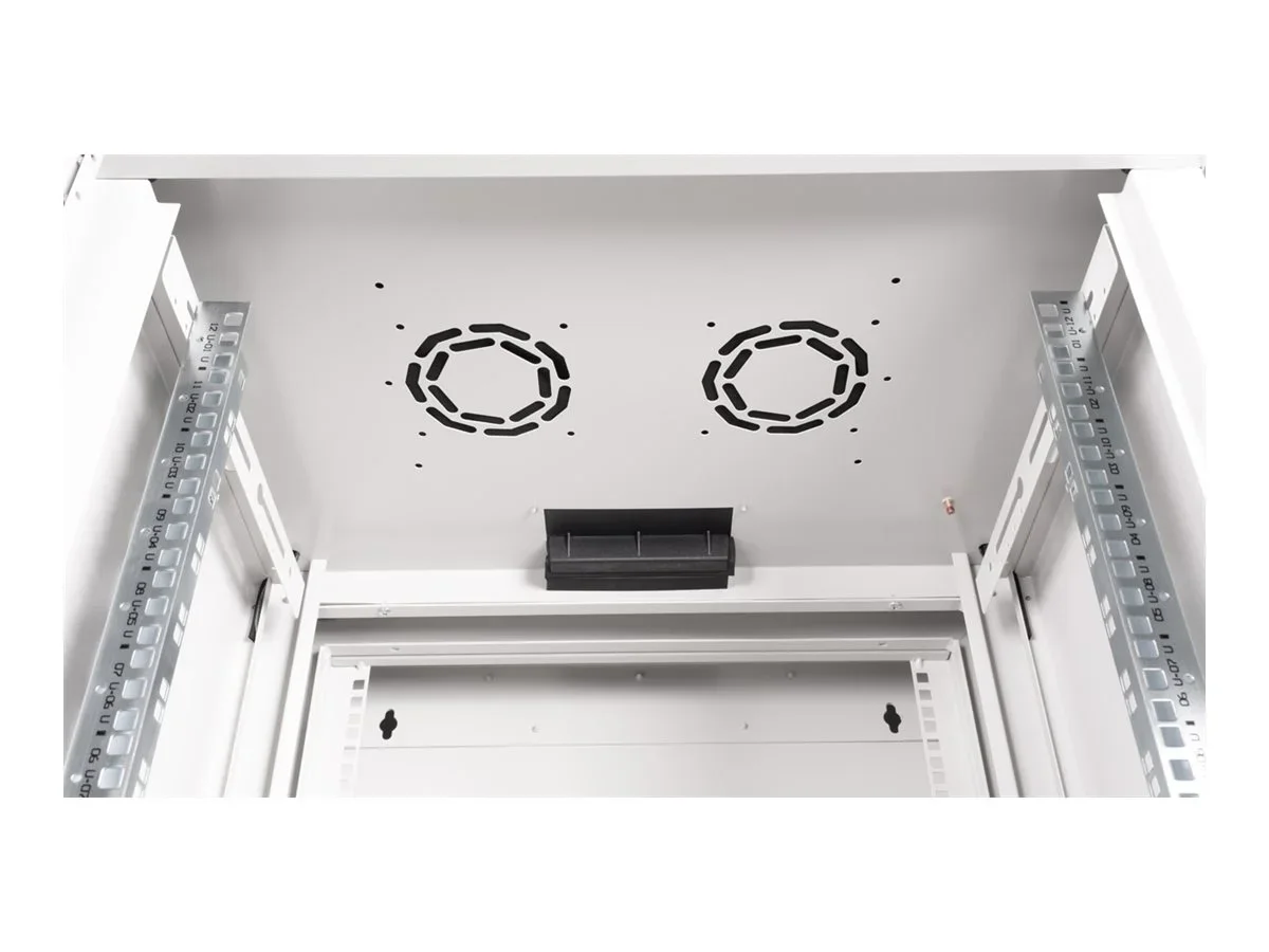 ROLINE 19 Zoll Wandgehäuse Pro 12 HE 600x600 BxT zweiteilig schwenkbar grauDie Wandgehäuse der ROLINE Pro Serie wurden speziell für eine flexible Netzwerkverkabelung konzipiert. Durch das integrierte Scharnier im rückseitigen Rahmen lässt sich das Gehäuse bei Bedarf zur Seite klappen. Jeder Schrank verfügt im Dach über einen verschiebbaren Kabeleinlass mit Moosgummidichtung. Rückwand und Boden sind mit ausgestanzten Kabeleinlässen und Kunststoffabdeckungen versehen. Der rückseitige Rahmen ist oben und unten mit Bürstenleisten ausgestattet. Zur Installation eines Lüftermoduls ist das Dachchassis bereits mit einem passenden Ausschnitt versehen. Im Inneren befinden sich galvanisierte 19"-Profilschienen, die in beide Richtungen ablesbar und in der Tiefe verstellbar sind. Der rückseitige Rahmen hat zusätzlich eine 19"-Lochung. Jeder Schrank besteht aus einer robusten Stahlkonstruktion aus bis zu 1,5 mm starkem Stahlblech und ist in den Standardfarben Grau (RAL 7035) und Schwarz (RAL 9005) elektrostatisch pulverbeschichtet. Modular abschließbare und abnehmbare Seitenwände sowie eine abschließbare und abnehmbare Fronttür verbessern die Zugänglichkeit. Der Türanschlag kann gewechselt werden. Die Wandmontage erfolgt in zwei einfachen Schritten: Der Rahmen des Gehäuses wird in der gewünschten Öffnungsrichtung an die Wand montiert und anschließend mit dem Gehäuse verbunden. Optional können die Wandgehäuse der ROLINE Pro Serie mit Nivellierfüßen oder Rollen auch freistehend genutzt werden. Fronttür aus gehärtetem Glas, abschließbar 1-Punkt-Verriegelung an der Fronttür Gehäuse ist mit rückseitigem Rahmen durch separates Schloss verbunden Kabelzuführung an Rückseite und Boden Seitenteile sind abschließ- und abnehmbar Dach mit Austanzung für Lüftermodule Lüftungsschlitze für passive Be- und Entlüftung Inkl. Befestigungsmaterial IP Schutzklasse: IP20.
