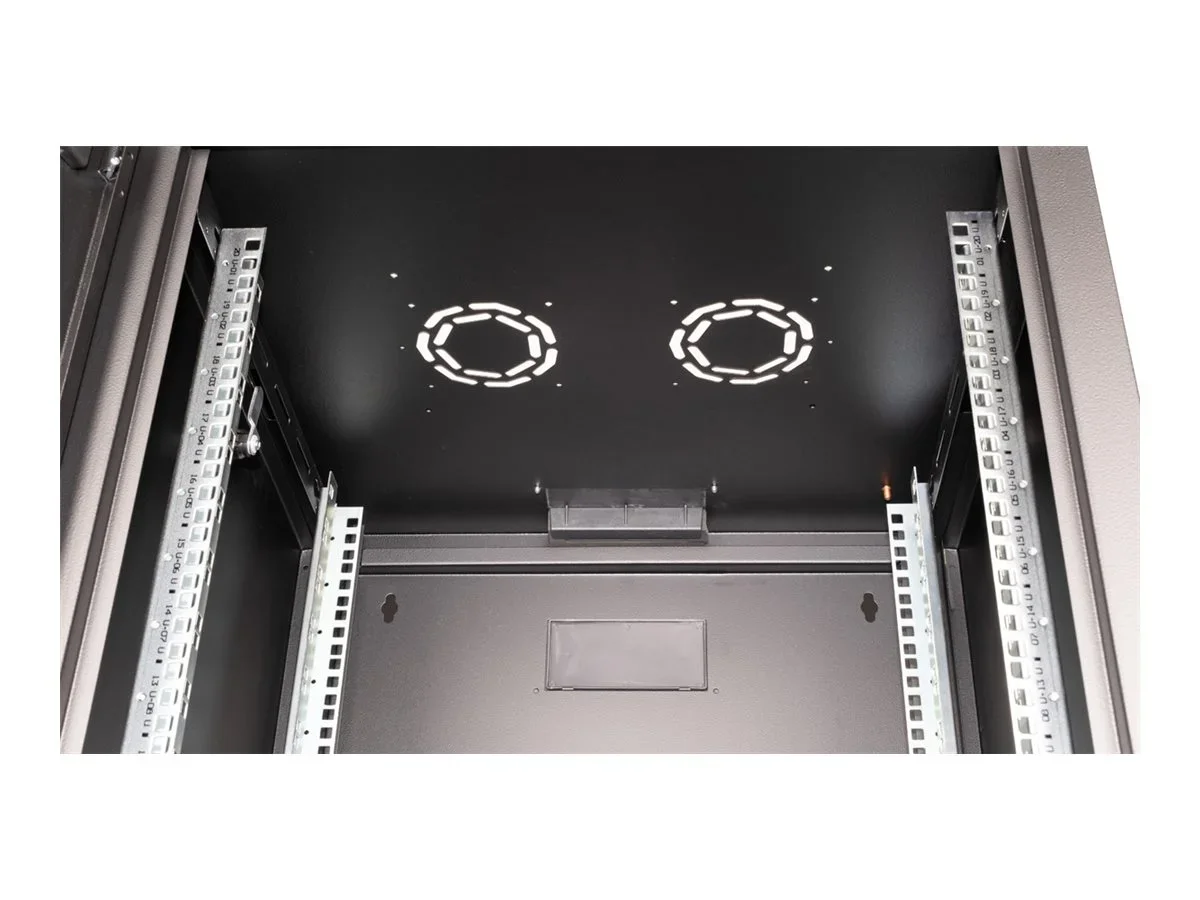 ROLINE 19 Zoll Wandgehäuse Pro 20 HE 600x600 BxT schwarzDie Wandgehäuse der ROLINE Pro Serie wurden speziell für eine flexible Netzwerkverkabelung konzipiert. Jeder Schrank verfügt über einen aufschiebbaren Kabeleinlass im Dach mit Moosgummidichtung. Die Rückwand und das Bodenblech sind mit ausgestanzten Kabeleinlässen und Kunststoffabdeckungen ausgestattet. Das Dachchassis bietet einen ausgestanzten Bereich zur Aufnahme eines Lüftermoduls. Im Inneren sind zwei Paar galvanisierte Profilschienen mit Höheneinheiten von 483 mm (19") verbaut, die zusätzlich in der Tiefe verstellbar sind. Die robusten Stahlkonstruktionen der Schränke bestehen aus bis zu 1,5 mm starkem Stahlblech und sind in Grau (RAL 7035) oder Schwarz (RAL 9005) pulverbeschichtet erhältlich. Die Seitenwände und die Fronttür sind modular abschließ- und abnehmbar, was die Zugänglichkeit verbessert. Die Wandmontage erfolgt in zwei einfachen Schritten: Zuerst wird die Rückwand an die Wand geschraubt und dann mit dem Gehäuse verbunden. Optional können Nivellierfüße oder Rollen verwendet werden, um die Schränke freistehend zu nutzen. Traglast: 100 kg Fronttür aus gehärtetem Glas, abschließbar 1-Punkt-Verriegelung an der Fronttür Seitenteile sind abschließ- und abnehmbar Kabelzuführung an Rückseite und Boden Dach mit Austanzung für Lüftermodule Lüftungsschlitze für passive Be- und Entlüftung Inkl. Befestigungsmaterial IP Schutzklasse: IP20.