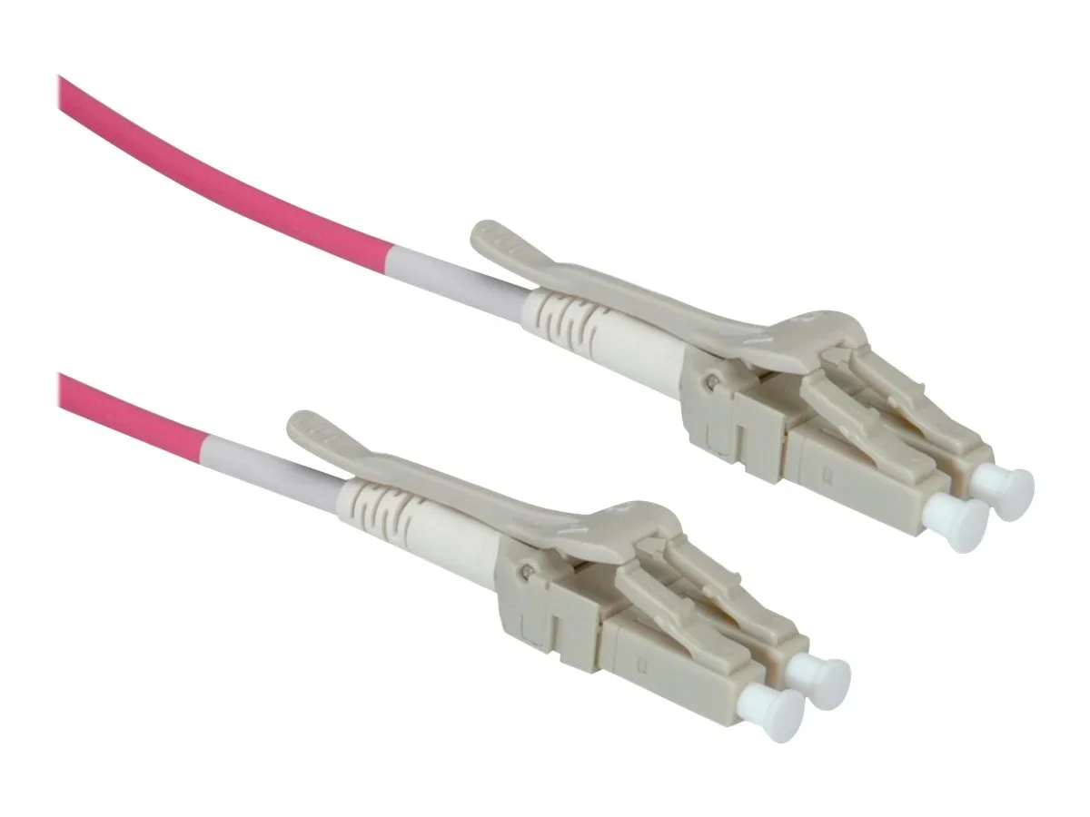 Die Lösung für Ihre Platzprobleme im LWL-Verkabelungs-Zentrum! ROLINE LWL-Patchkabel in OM4-Qualität mit Low-Loss-Steckern für hohe Dichte für hoch performante LWL-Verkabelung in überlegener ROLINE-Qualität.Der LC-Stecker mit seinem kleinen Querschnitt erlaubt hohe Dichten im Verteilerbereich. Überall, wo es zu solch hohen Dichten kommt, wird es schwierig, nahe genug an den Stecker zu kommen, damit man sicher und sauber patchen kann. Nun bieten wir die Lösung für dieses Problem! Die Stecker der neuen Data-Center-Kabel sind so konstruiert, dass ein Administrator nicht mehr an das eigentliche Steckergehäuse greifen muss, vielmehr einige Zentimeter vom Patchpanel entfernt die Verriegelung des Steckers lösen und so das Kabel problemlos abziehen kann.Die äusserst hohe Qualität der OM4-Faser und die Stecker mit besonders niedriger Einfügedämpfung sichern eine hervorragende Übertragungsqualität auch bei sehr hohen Bandbreiten. Material und Konfektion in ROLINE-Qualität Die Kabel, mit "Low-Loss"-Steckern konfektioniert, erzielen besonders gute Werte bei Einfügedämpfung (durchschnittlich 0,15 dB - gegenüber 0,5 dB bei Standard-Steckern) und Reflexion. Die OM4 Faser mit ihrer modalen Bandbreite von 4700 MHz*km unterstützt schnelle Netzwerke, z.B. 10 Gigabit Ethernet mit immerhin noch 550m Reichweite, oder auch größere Reichweiten, z.B. besonders lange Gebäude-Backbones und längere Campus-Backbones bei Gigabit-Geschwindigkeit. Duplex-Kabel mit dem Fasertyp 50/125µm, verfügbar in den Längen 0,5m, 1m, 2m, 3m, 5m, 10m, 15m und 20m Kabelfarbe: violett.