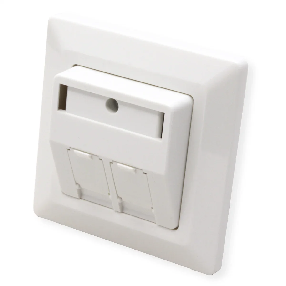 Unterputz Anschlussdose - Keystone-Träger mit Abdeckung, nicht bestückt. Ideal für die Installation von zwei Keystone-Modulen und dank ihrer intelligenten Konstruktion mit mehr Platz zur Zuleitung der Kabel – für eine komfortable und saubere Netzwerkinstallation.