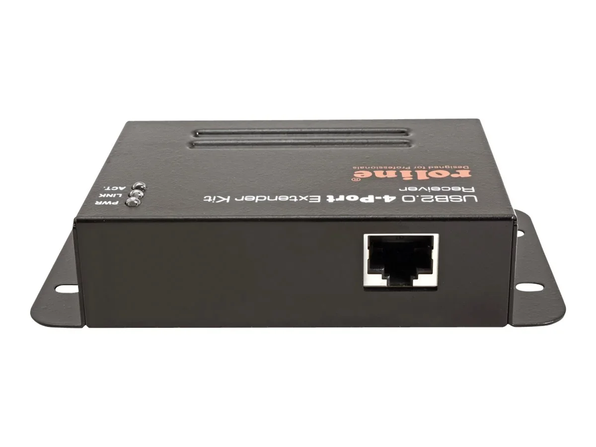 Verlängern Sie Ihren USB-Anschluss auf bis zu 50 Meter! Schließen Sie bis zu vier USB 2.0 Peripheriegeräten (Hub Funktion) in bis zu 50m Entfernung an Ihren PC an Hot plug Abwärts kompatibel zu USB 1.1 Verbindung über Kat.5e/Kat.6 Twisted Pair Kabel Sender: USB B Buchse / RJ-45 Empfänger: 4x USB A Buchse / RJ-45 PoC Unterstützung (Power over Cable) Max. Datenübertragungsrate bis zu 480Mbit/s Externe Stromversorgung für Sender (im Lieferumfang enthalten, 24 V DC, 0,5A) Metallgehäuse, Wandbefestigung möglich Lieferumfang: Sender (RJ-45 Buchse; USB Typ B Buchse), USB-Kabel Typ A - B (50cm), Empfänger (RJ-45 Buchse; 4x USB Typ A Buchse), Steckernetzteil (24 V DC, 0,5A).