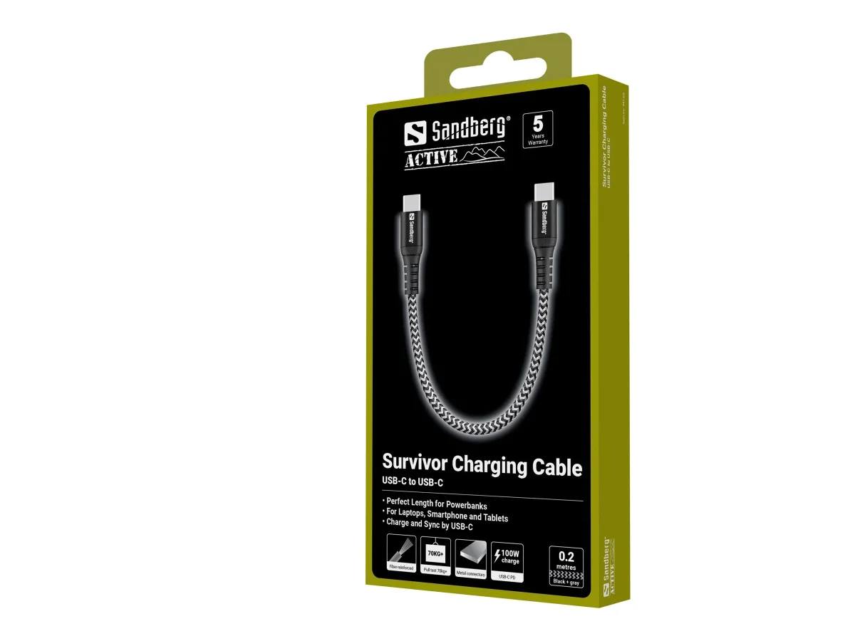 Sandberg Survivor - USB-Kabel - 24 pin USB-C (M) zu 24 pin USB-C (M) - 20 cm