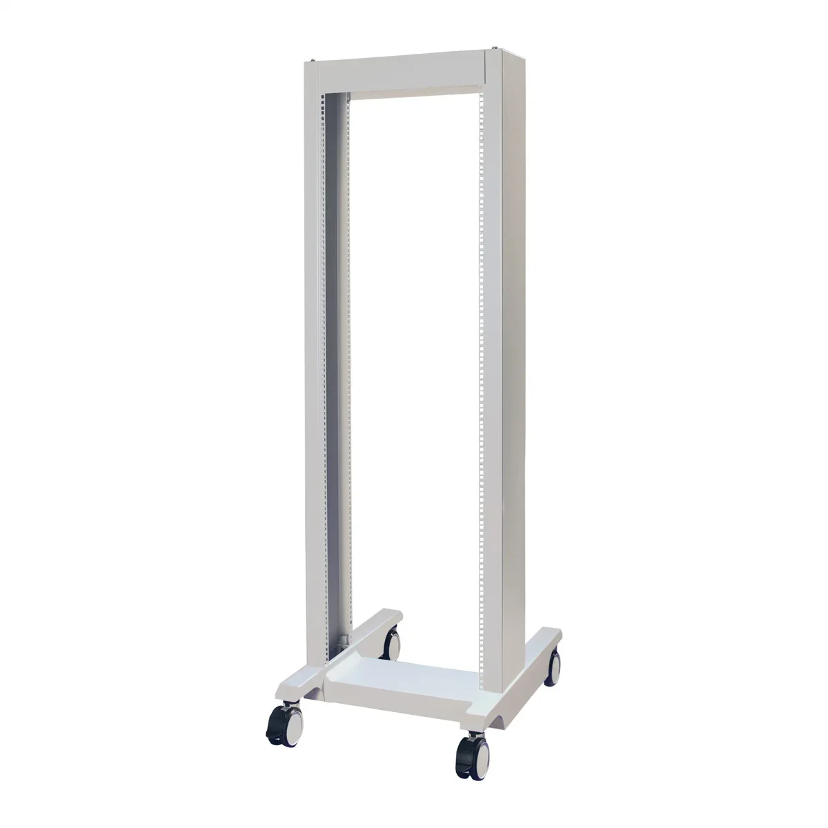 19-Zoll-Laborgestell, mobil, offenes Gestell, Tragfähigkeit 200 kg und empfohlene Einschubtiefe bis 400 mm, ideal für allgemeine Elektronik, Prüf- und Mess-, Audio-/Video- und Rundfunkanwendungen.