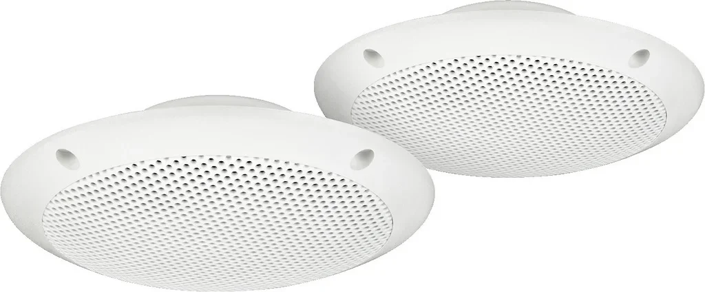 Wetterfestes ELA-Einbaulautsprecher-Paar, 15 W, mit UV-stabilisiertem Kunststoffgehäuse in besonders flacher Bauform. Universell einsetzbar in den Bereichen Auto-Hi-Fi, ELA, Terrasse, Boot, Schwimmbad.