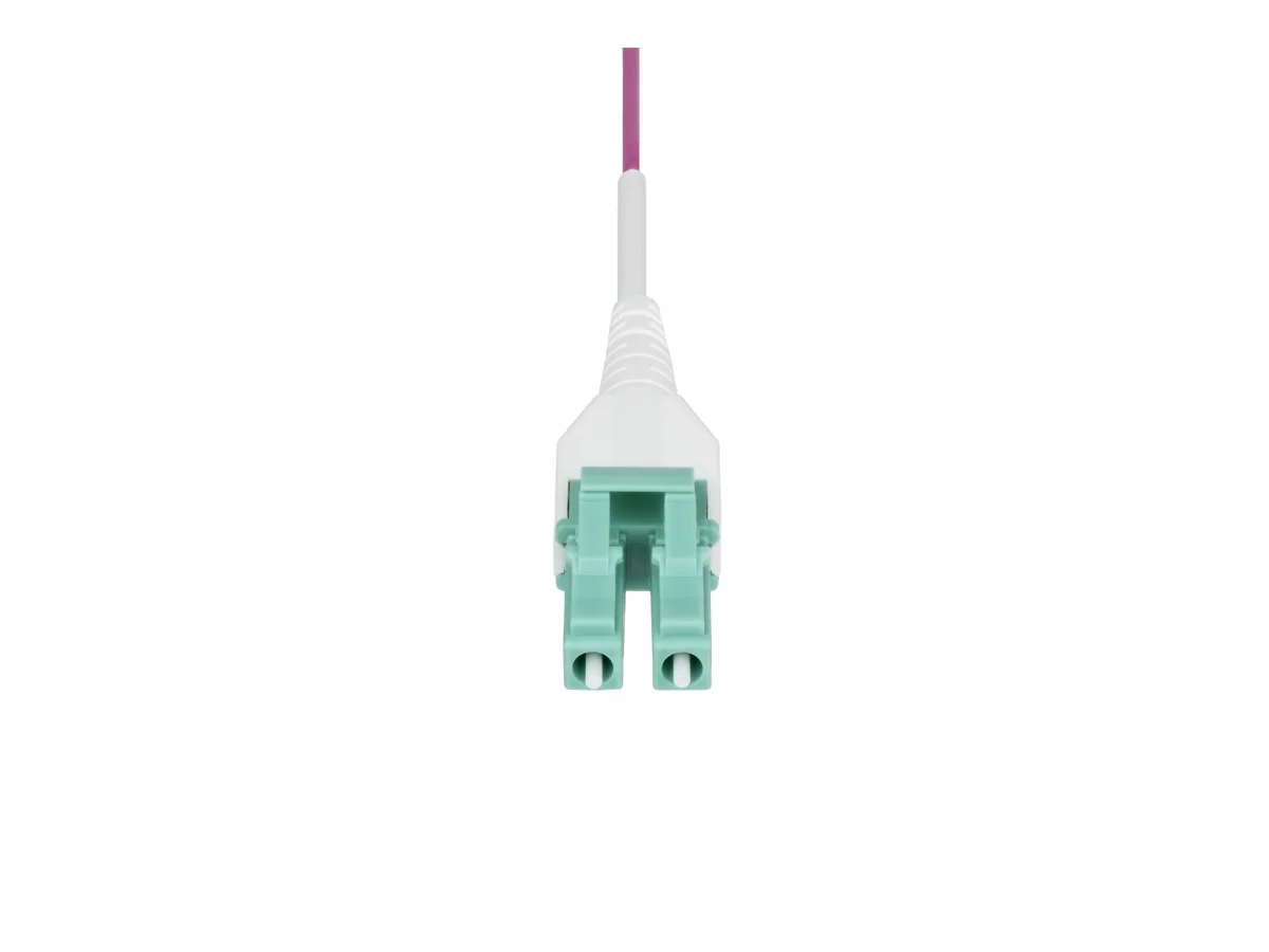 Das 1 m (3,3 ft) lange LC/LC (UPC) OM4 Multimode-Glasfaserkabel bietet eine zuverlässige Lösung für Hochgeschwindigkeitsverbindungen. Dieses Patchkabel wurde mit laseroptimierter Multimode-Faser entwickelt und unterstützt Datenraten von bis zu 100 Gbit/s, wodurch es sich für anspruchsvolle Anwendungen eignet. Dank der OM4-Konformität gewährleistet es eine effiziente Leistung über kurze Entfernungen. Das Kabel verfügt an beiden Enden über langlebige LC/UPC-Duplex-Stecker, die für robuste Verbindungen sorgen. Der flammhemmende Mantel und die Zugentlastung tragen zur Sicherheit und Langlebigkeit bei, während der Biegeradius von 7,5 mm eine einfache Installation in engen Räumen ermöglicht. Dieses Glasfaserkabel ist außerdem für den Betrieb in einem breiten Temperaturbereich ausgelegt und gewährleistet so eine konstante Leistung in verschiedenen Umgebungen.