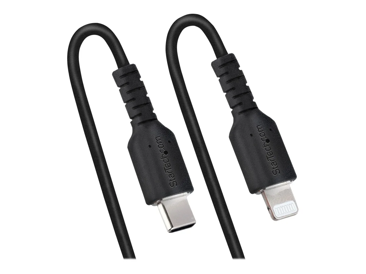StarTech.com 1m USB C auf Lightning Kabel, spiralkabel, MFi-zertifiziert, Schnellladekabel für iPhone/iPad/iPod , schwarz, langlebiger TPE-Mantel aus Aramidfaser, USB C 2.0 Kabel (RUSB2CLT1MBC) - Lightning-Kabel - USB-C männlich zu Lightning männlich - 1 m - Schwarz - gewickelt