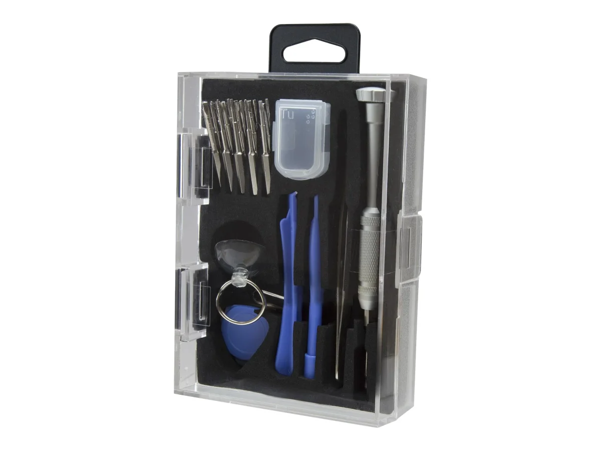 Dieses 23-teilige Werkzeug-Kit beinhaltet alle grundlegenden Schraubendreher, Bits, Pinzetten und Spudger, die Sie zur Reparatur von so gut wie jedem Smartphone, Tablet oder Laptop benötigen. Dies ist die perfekte Ergänzung für Ihre Elektronik-Werkbank und ermöglicht die Arbeit an zahlreichen Mobilgeräten, darunter iPhone, iPad, Samsung Galaxy , HP Chromebook , Lenovo Think Pad , Acer Chromebook und MacBook.