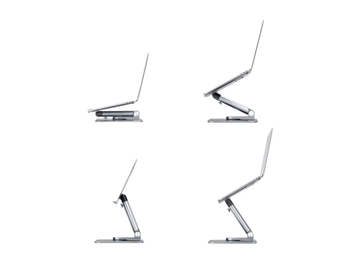 Mit einer maximalen Belastbarkeit von 5 kg eignet sich dieser robuste Ständer für verschiedene Laptop-Größen. Durch die Verstellung der Höhe und Neigung können Benutzer ihre Einrichtung sowohl für die sitzende als auch für die stehende Position anpassen. Die praktischen Funktionen in Kombination mit einem eleganten Design machen diesen Notebook-Ständer ideal für zu Hause und im Büro und sorgen dafür, dass Komfort und Produktivität Hand in Hand gehen.