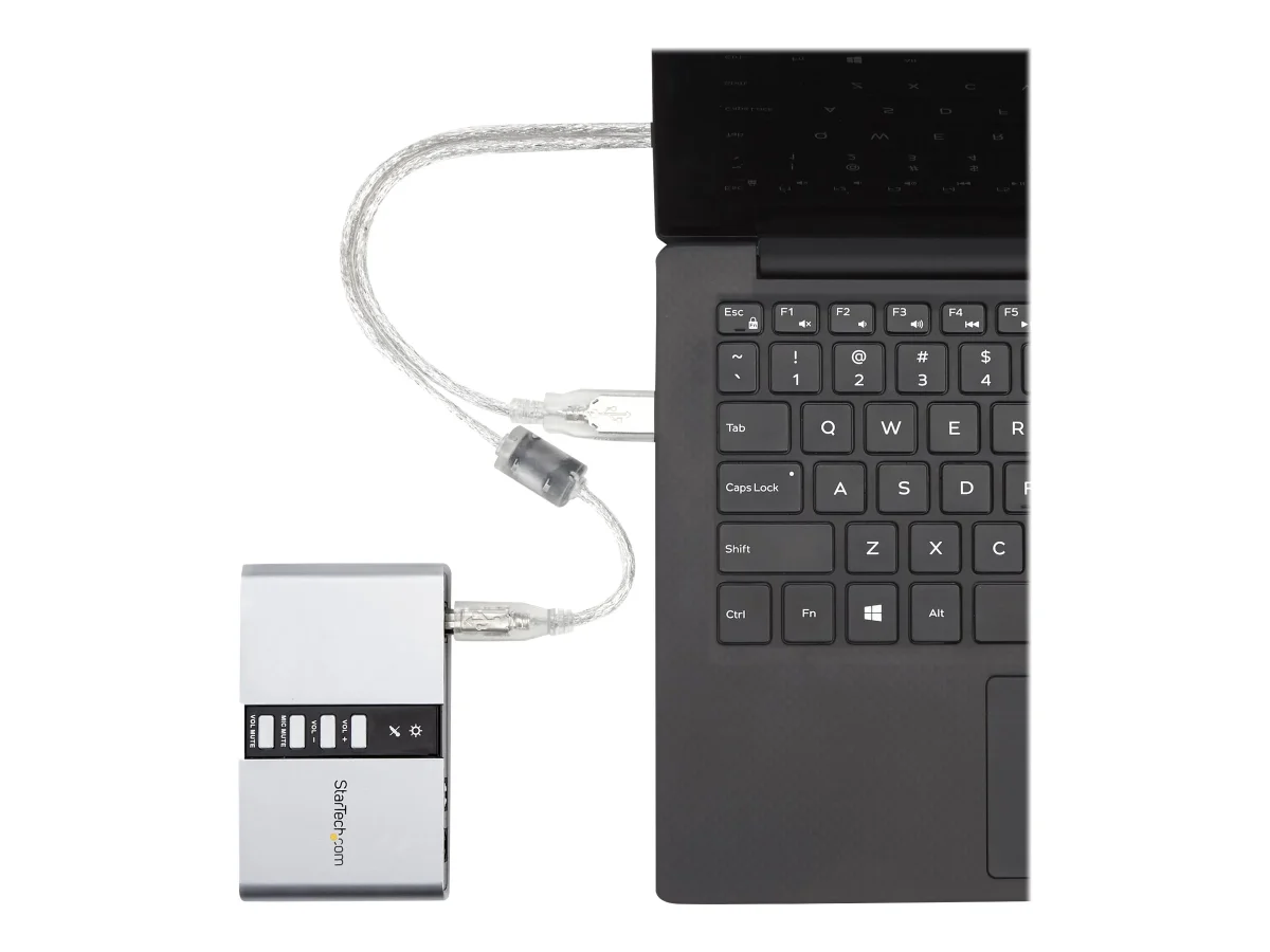 Dieser vielseitige externe USB Soundkarten-/Audioadapter ist die High-Quality-Lösung zum Aufrüsten Ihres Desktop- oder Laptop-Sounds.