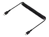StarTech.com 1m USB C auf USB C Kabel, hochbelastbares Spiralkabel zum Laden und Synchronisieren, USB C 2.0 Kabel, robuste Aramidfaser, Schnellladekabel mit EMI Schutz, schwarz (R2CCC-1M-USB-CABLE) - USB-Kabel - USB-C (M) zu USB-C (M) - USB 2.0 - 3 A - 1 m - gewickelt - Schwarz