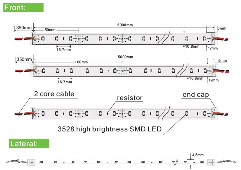 Synergy 21 LED Flex Strip kaltweiss DC12V, 24W, IP65 Spannung: 12V, max.2A Watt: 24W±10% Lichtfarbe: 6250K±250K kaltweiss Helligkeit: 1600lm Abstrahlwinkel: 120° Schutzklasse: IP65, empty tube LED Anzahl: 300*3528SMD Maße: 5000*11*5 mm PCB-Farbe: weiss, offenes Kabelende Arbeitstemperatur: -25°C bis +40°C Gewicht: 0,090 kg Kürzbar alle 3 LED Energieeffizienzklasse: A kWh/1000h: 27 Strip an den Markierungsmarken mit scharfer Schere kürzbar. !Achtung! Strip muss zuvor auf Funktionalität überprüft werden. Strip nur teilen wenn kein Strom anliegt. Unser 3M Klebeband ist gut haftend, aber trotzdem nur als Montagehilfe anzusehen. Es gibt eine vielzahl an Befestigungsmöglichkeiten, wie Clips, dauerelastischer Montagekleber, Kabelbinder, etc. Bitte beachten sie, dass auch LED Streifen gekühlt werden müssen. Achten sie darauf, dass der LED Strip die Arbeitstemperatur von 40°C nicht überschreitet, da sonst die Lebensdauer nicht gewährleistet werden kann. Auf überhitzte LED Strips kann keine Garantie gewährt werden