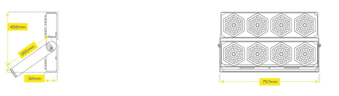 Betriebsspannung: AC 85-265V, 50/60Hz LED: 8 Module a 168 LEDs, CREE 3030 140lm/Watt Netzteil: 4*MeanWell Abstrahlwinkel: 30°, Modul schwenkbar Lumen: 8*14000lm = 112000lm Effizienz: 140Lm/Watt Lichtfarbe: 5700K ±150 CRI: Ra>70 dimmbar: nein Gehäuse: Aluminium Arbeitstemperatur: -40°C bis +65°C Schutzklasse: IP67 / IK08 Abmessungen: 757*92*458mm Andere Abstrahlwinkel auf Anfrage: 10°/30°/60°/90°/120° Andere Lichtfarben auf Anfrage: 4000K/5000K/5700K/6500/ Energieeffizienzklasse: A++ kWh/1000h: 800 Der Anschluss Elektrischer Bauteile und Anlagen darf grundsätzlich nur von qualifizierten Fachpersonal vorgenommen werden!