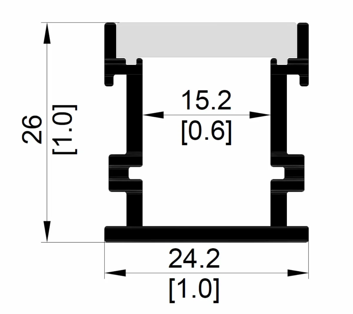 Begehbares Aluprofil Für LED Streifen bis 15,2mm Breite B/H (24,2*26,0) Länge 2m Bitte beachten: Abdeckung und Endkappen sind extra zu bestellen