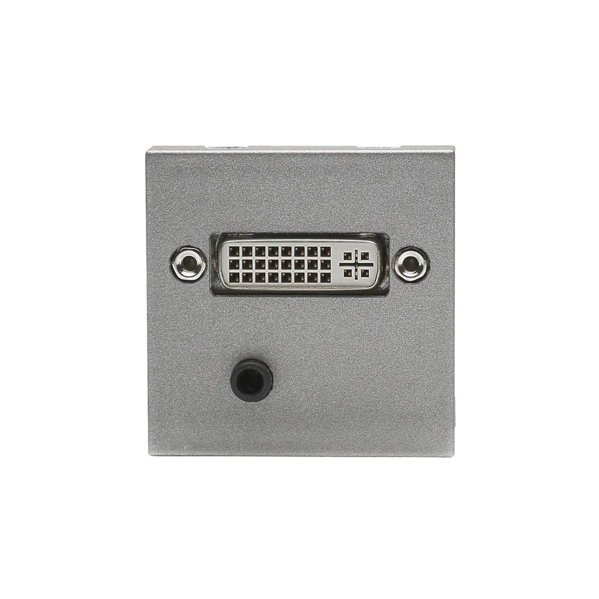 SYSWALL45 DVI+Minikl. -> KlemmblockPlatte: 45x45mm Clip-IN-TechnikFarbe: silber lackiert ---------------------------------Anschlüsse Vorderseite:1x DVI 24+5 female1x 3,5mm Klinkenbuchse---------------------------------Anschlüsse Rückseite:1x 24fach A…