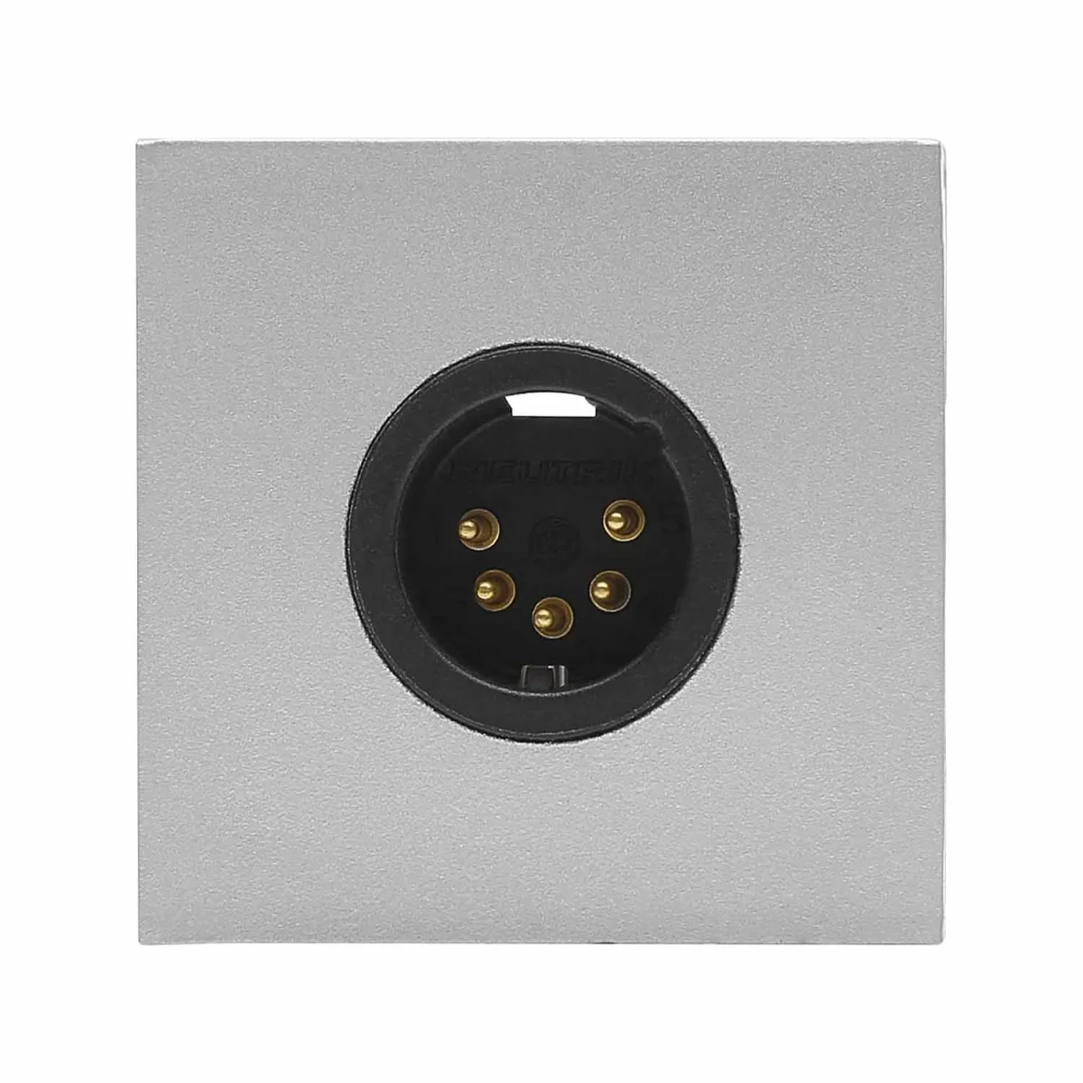 SYSWALL45 XLR 5p male -> KlemmblockPlatte: 45x45mm Clip-IN-TechnikFarbe: silber lackiert ---------------------------------Anschlüsse Vorderseite:1x XLR 5pin male (NEUTRIK NC5MA)---------------------------------Anschlüsse Rückseite:1x 3fach Aufzugs-Kl…