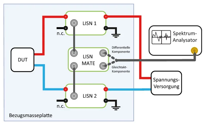 DC-LISN-Set für Messungen nach CISPR25 inkl. LISN-Mate Das DC-LISN-Set ist ideal zum Testen leitungsgebundener Störaussendung von Geräten mit Gleichspannungsversorgung, z. B. zur Prüfung von Baugruppen gemäß CISPR 25 im Automotive-Bereich. Inkl. LISN-Mate zur Aufsplittung des leitungsgebundenen Störsignals in seine Gleichtakt- und differentielle Komponente. Falls Sie nicht mit der LISN-Mate arbeiten muss der HF-Ausgang der jeweils unbenutzten LISN mit 50 Ω terminiert werden. Das Set besteht aus: 2 x 5 µH Gleichspannungs-LISN bis 10 A (TBOH01) 1 x LISN-Mate (TBLM1) 2 x Koaxialkabel (RG-223), BNC-Stecker auf BNC-Stecker, 35 cm 1 x Koaxialkabel (RG-58), BNC-Stecker auf N-Stecker, 75 cm 1 x 50 Ω BNC-Abschlusswiderstand, 2 W