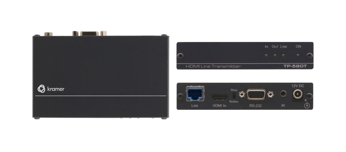 - Hochleistungs–Reichweitenverlängerung — Professionelle HDBaseT–Verlängerung für Twisted Pair Kupferkabel. TP–580T kann direkt an HDBaseT–konforme marktübliche AV–Produkte angeschlossen werden. Für optimale Reichweite und Leistung verwenden Sie die empfohlenen Kramer–Kabel.