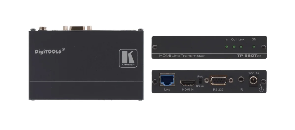 - Hochleistungs–Reichweitenverlängerung — Professionelle HDBaseT–Verlängerung für Twisted Pair Kupferkabel. TP–580Txr kann direkt an HDBaseT–konforme marktübliche AV–Produkte angeschlossen werden. Für optimale Reichweite und Leistung verwenden Sie die empfohlenen Kramer–Kabel.