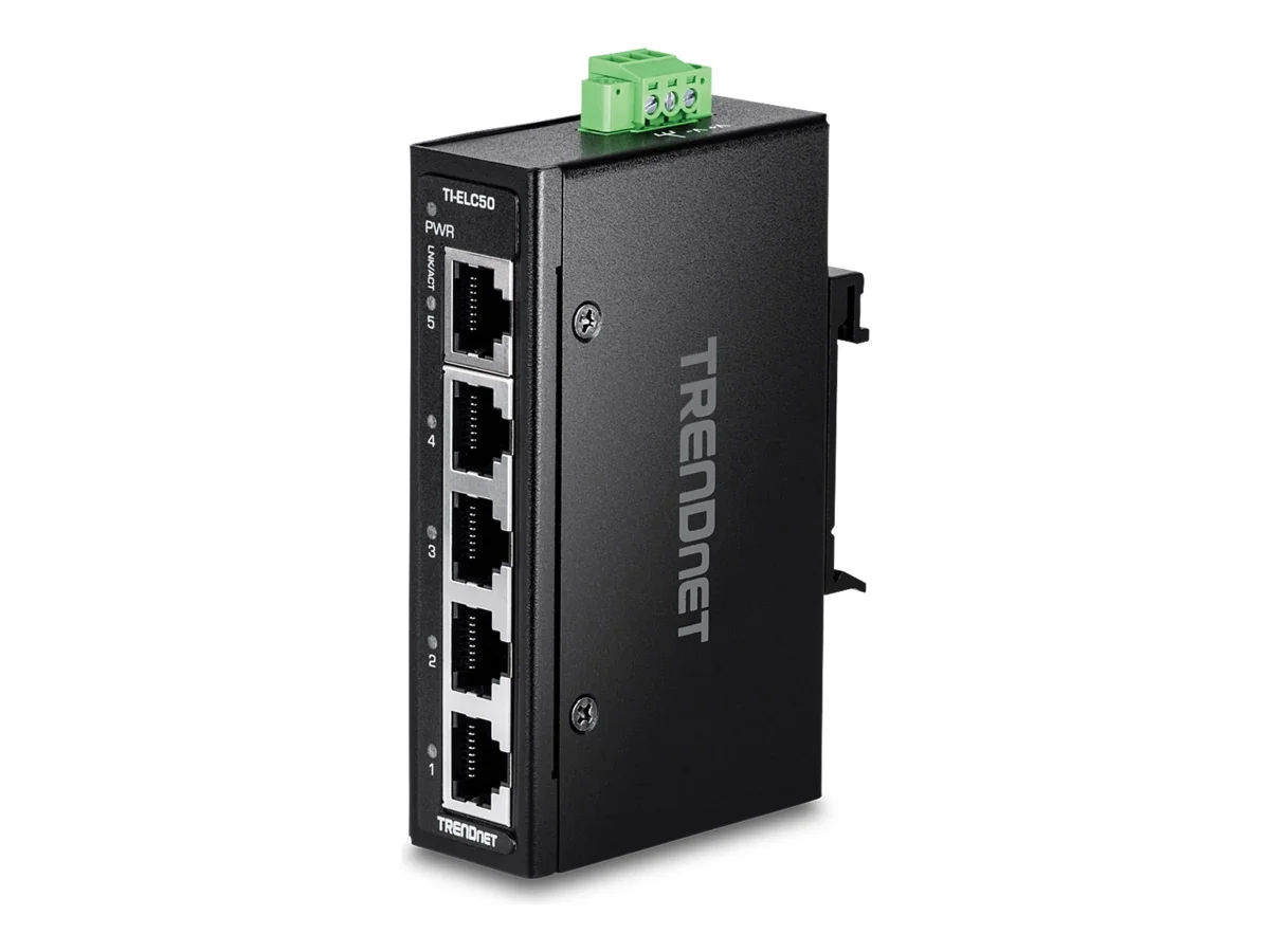 Der TRENDnet TI-ELC50 wurde für industrielle Anwendungen entwickelt und vereint Langlebigkeit und effektive Leistung in einem kompakten Formfaktor. Mit einer Kapazität von 56 KB RAM-Puffer arbeitet er zuverlässig bei extremen Temperaturen von -40 °C bis 75 °C und kann Feuchtigkeitswerte von bis zu 95 % ohne Kondensation bewältigen. Dieser Switch verfügt über fünf 10/100Base-TX-Ports mit Auto-Negotiation-Funktionen, die eine effiziente Datenübertragung unter verschiedenen Netzwerkbedingungen gewährleisten. Durch seine Mini-Größe eignet er sich für die Wand- oder DIN-Schienenmontage und ermöglicht eine flexible Installation auf engstem Raum.