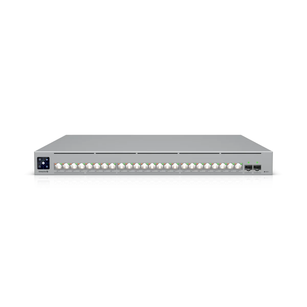 Bei diesem Artikel wird der Listenpreis angezeit, den Projektpreis erhalten Sie nach Ihrer Anfrage. Dieses Produkt kann erst nach Projektregisrierung bezogen werden. Bitte senden Sie Ihre Projektanfrage an ubiquiti@allnet.de Highlights: (16) 10 GbE, (8) 2,5 GbE-Ports, alle PoE+++ (90-W-fähig) (2) 25G SFP28-Anschlüsse (2) Im Lieferumfang enthaltene Hot-Swap-fähige Stromversorgungsmodule für Redundanz (4) enthaltene Hot-Swap-Lüftermodule mit einem Backup 24-Port-Layer-3-Etherlighting™-PoE+++-Switch der Unternehmensklasse mit hochkapazitiven 10-GbE-RJ45- und 25G-SFP28-Anschlüssen für ein Systemdesign mit hoher Verfügbarkeit. Technische Daten: Mechanisch Maße 442 x 496 x 44 mm (17,4 x 19,5 x 1,7 Zoll) Gewicht Ohne Montagehalterungen: 9,2 kg (20,3 lb) Mit Montagehalterungen: 9,3 kg (20,5 lb) Gehäusematerial SGCC-Stahl Gleitschienenunterstützung Die Schienen unterstützen 482,6 mm (19") Vierpfosten-Racks mit quadratischen Löchern (9,5 x 9,5 mm) und Pfostentiefen von 650 bis 1.000 mm (25,6–39,4"). Hardware Verwaltungsschnittstelle Ethernet In-Band Netzwerkschnittstelle (16) 10/5/2,5/1 GbE, 100/10 MbE RJ45-Ports (8) 2,5/1 GbE, 100/10 MbE RJ45-Ports (2) 25/10/1G SFP28-Ports PoE-Schnittstelle (24) 90W PoE+++ (Paar A 1, 2+ 3, 6-) (Paar B 4, 5+ 7, 8-)**802.3bt Typ 4, Klasse 8 Gesamter nicht blockierender Durchsatz 230 Gbit/s Schaltleistung 460 Gbit/s Weiterleitungstarif 342,24 Mpps Leistungsmethode (2) Universaleingang, 100—240 V AC, 50/60 Hz Stromversorgung (2) Hot-Swap-fähige AC/DC 600 W-Stromversorgungsmodule**Stromversorgungsmodule arbeiten mit 1 + 1-Redundanz. Unterstützter Spannungsbereich 100–240 V Wechselstrom Max. Stromverbrauch Ohne PoE-Ausgang: 150 W Mit PoE-Ausgang: 1.200 W Insgesamt verfügbares PoE 1.050 W**Mit (2) 1.200 W-Stromversorgungsmodulen (separat erhältlich). Die insgesamt verfügbare PoE beträgt 450 W mit (2) 600 W-Modulen. Max. PoE-Leistung pro Port durch PSE Leistung: 90 W Spannungsbereich PoE-Modus 50–57 V Lüftermethode (4) Hot-Swap-fähige Lüftermodule**Lüftermodule arbeiten mit 3 + 1-Redundanz. LCM-Anzeige (1) 1,3-Zoll-Touchscreen Taste Werksreset Umgebungstemperatur im Betrieb -5 bis 40 °C (23 bis 104 °F) Luftfeuchtigkeit bei Betrieb 10 bis 90 % nicht kondensierend Zertifizierungen CE, FCC, IC Schaltfunktionen Layer 2-Funktionen IGMP-Snooping STP/RSTP mit Prioritäten und Deaktivierung auf Port-Ebene Port-Isolation Sturmkontrolle Voice-VLAN Port-Spiegelung LACP-Port-Aggregation Multicast-/Broadcast-Ratenbegrenzung Blockierung von MAC-Adressen Flusskontrolle 802.1X-Steuerung Jumbo-Frames Proprietärer Loop-Schutz DHCP-Snooping/-Guarding Ausgangsratenbegrenzung LLDP-MED Durch MAC eingeschränkter Port Geräteisolierung mit ACLs Layer 3-Funktionen DHCP für lokal verwaltete Netzwerke DHCP-Relay Inter-VLAN-Routing zwischen Netzwerken auf demselben Switch Statisches Routing zwischen lokalen Netzwerken Netzwerkisolation mit ACLs Etherlighting™ Ethernet Geschwindigkeit/Verbindung lokalisieren Natives VLAN/Netzwerk SFP28 Geschwindigkeit/Verbindung lokalisieren Natives VLAN/Netzwerk LEDs System Status Ethernet Link/Aktivität
